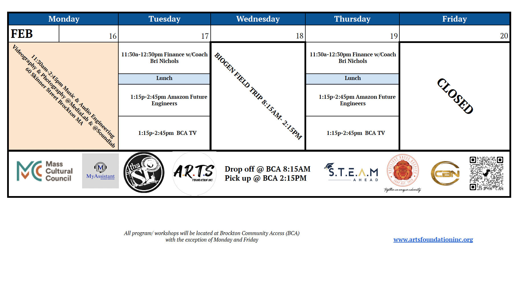 Note: All programs and workshops will be located at Brockton Community Access (BCA) unless otherwise noted.