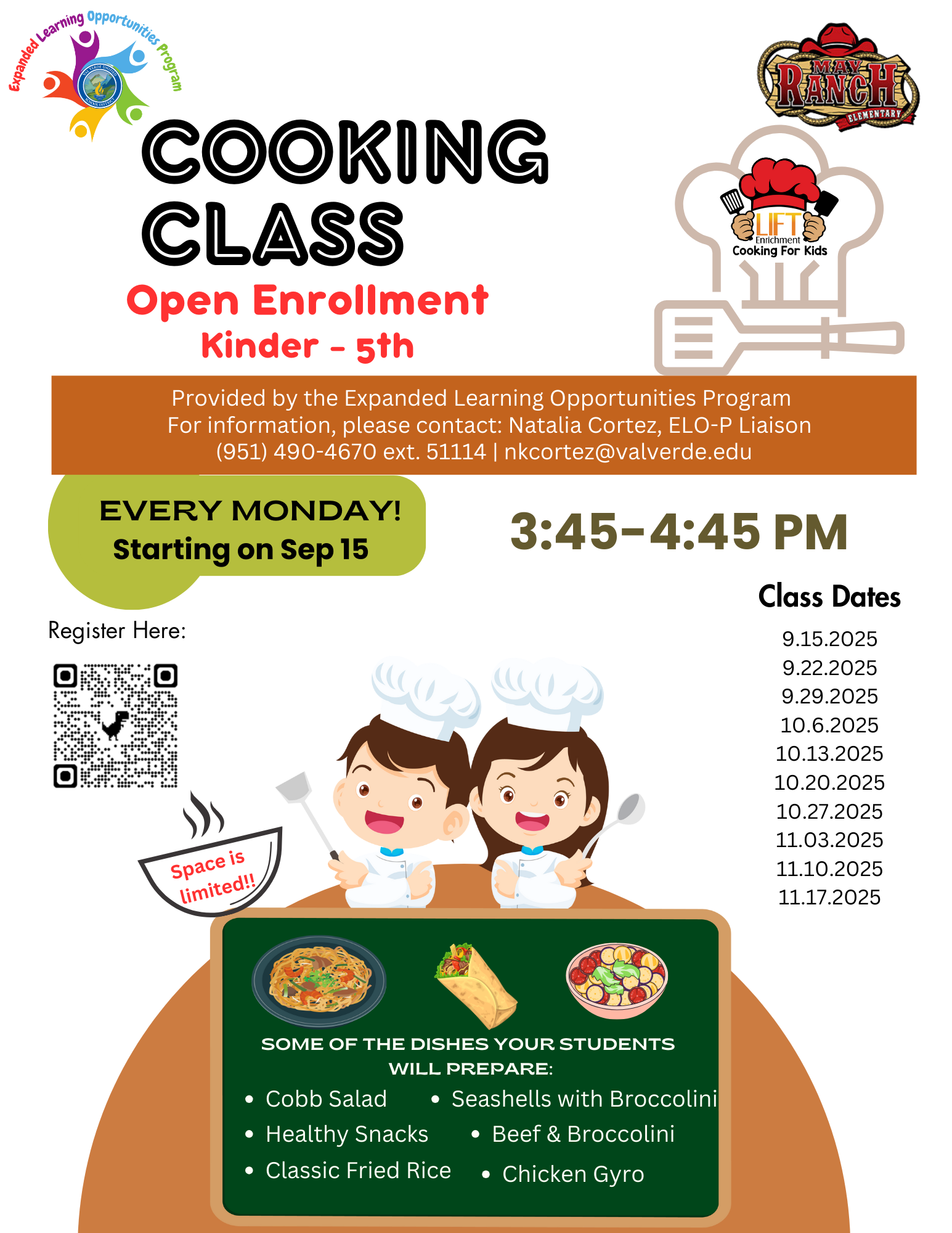 Students will be picked up from Think Together at 3:45 to join the Cooking Academy. Then they will return to Think Together at 4:45pm