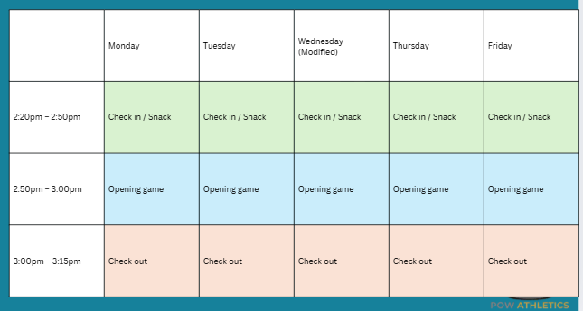 Pick up is at the Kinder Gate at 3:00 - 3:15pm daily.