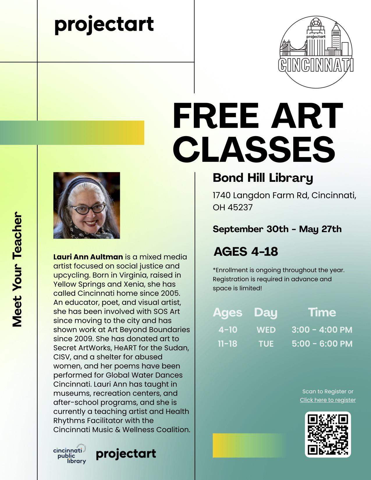 ProjectArt’s free after-school art classes run from late September through May in the Cincinnati and Hamilton County Public Library branches across the county. All materials are provided.