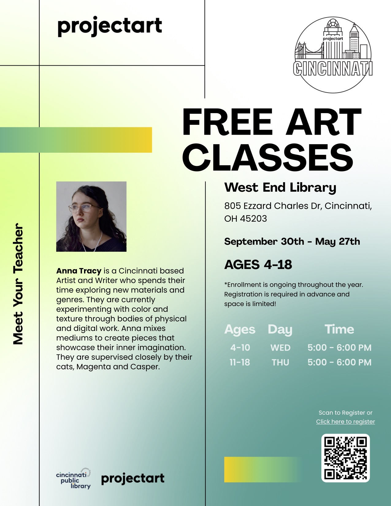 ProjectArt’s free after-school art classes run from late September through May in the Cincinnati and Hamilton County Public Library branches across the county. All materials are provided.