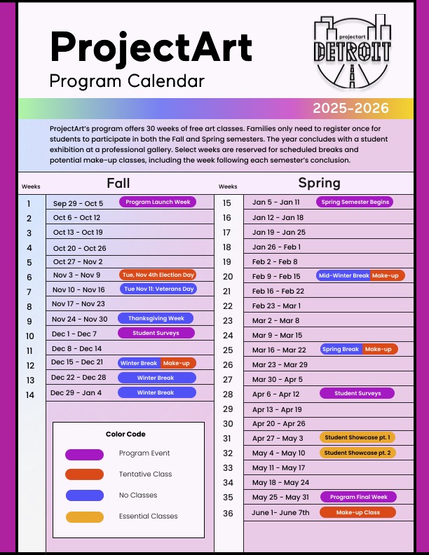 ProjectArt’s free classes run from September - May. Materials are provided for all students ages 4-18. Local, professional artists teach classes aligned with the National Arts Education Association standards and are informed by the teaching artist's personal artistic practice. ProjectArt classes are fun, imaginative and cultivate a love of learning.