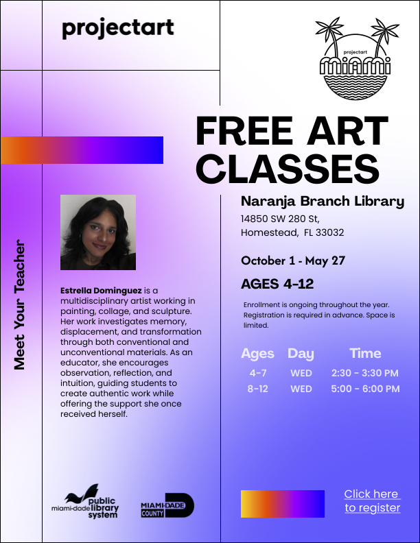 ProjectArt’s free after-school art classes run from late September through May in Miami-Dade Public Library System branches across the county. All materials are provided.
