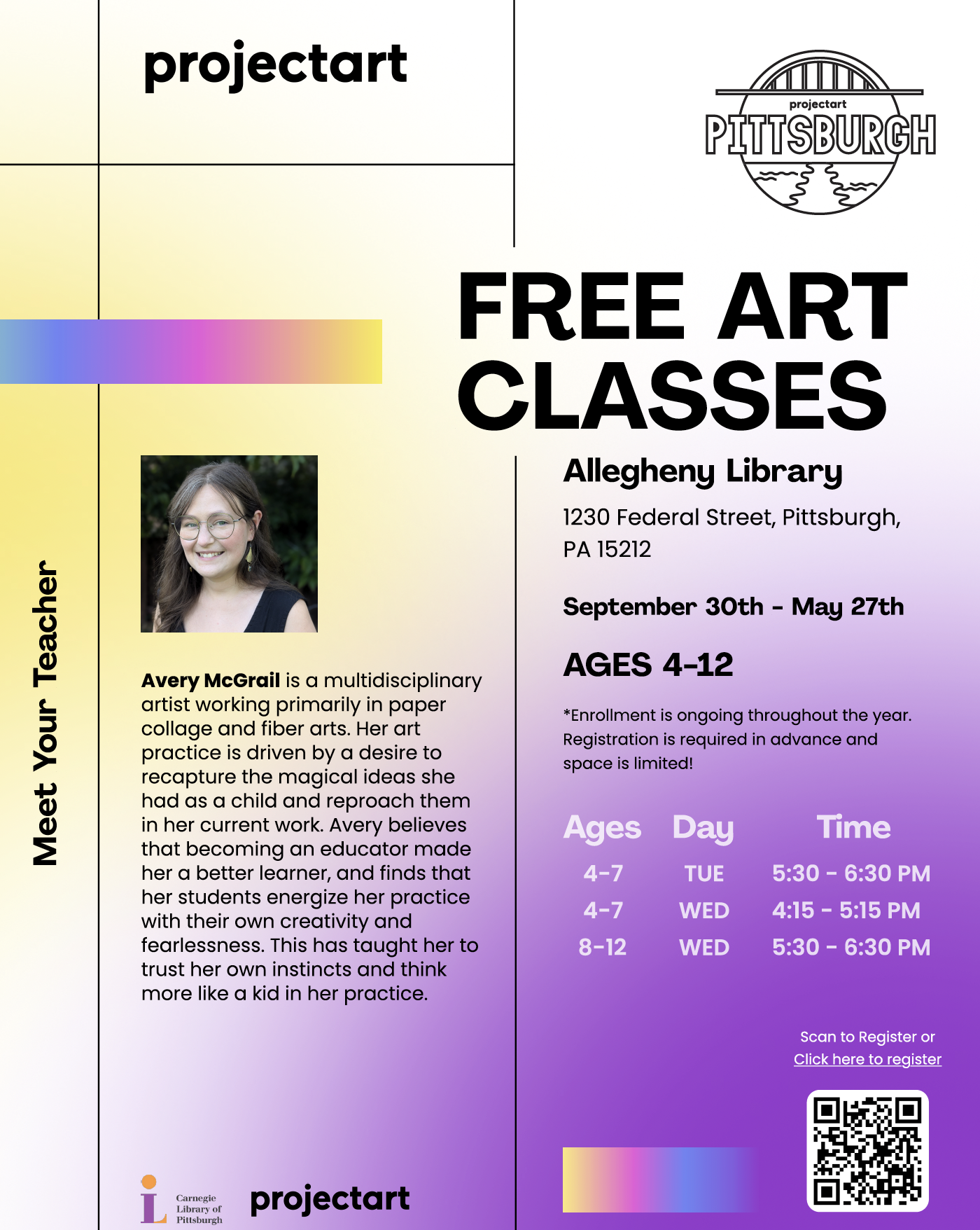 ProjectArt’s free after-school art classes run from late September through May in Carnegie Library of Pittsburgh branches across the city. All materials are provided.