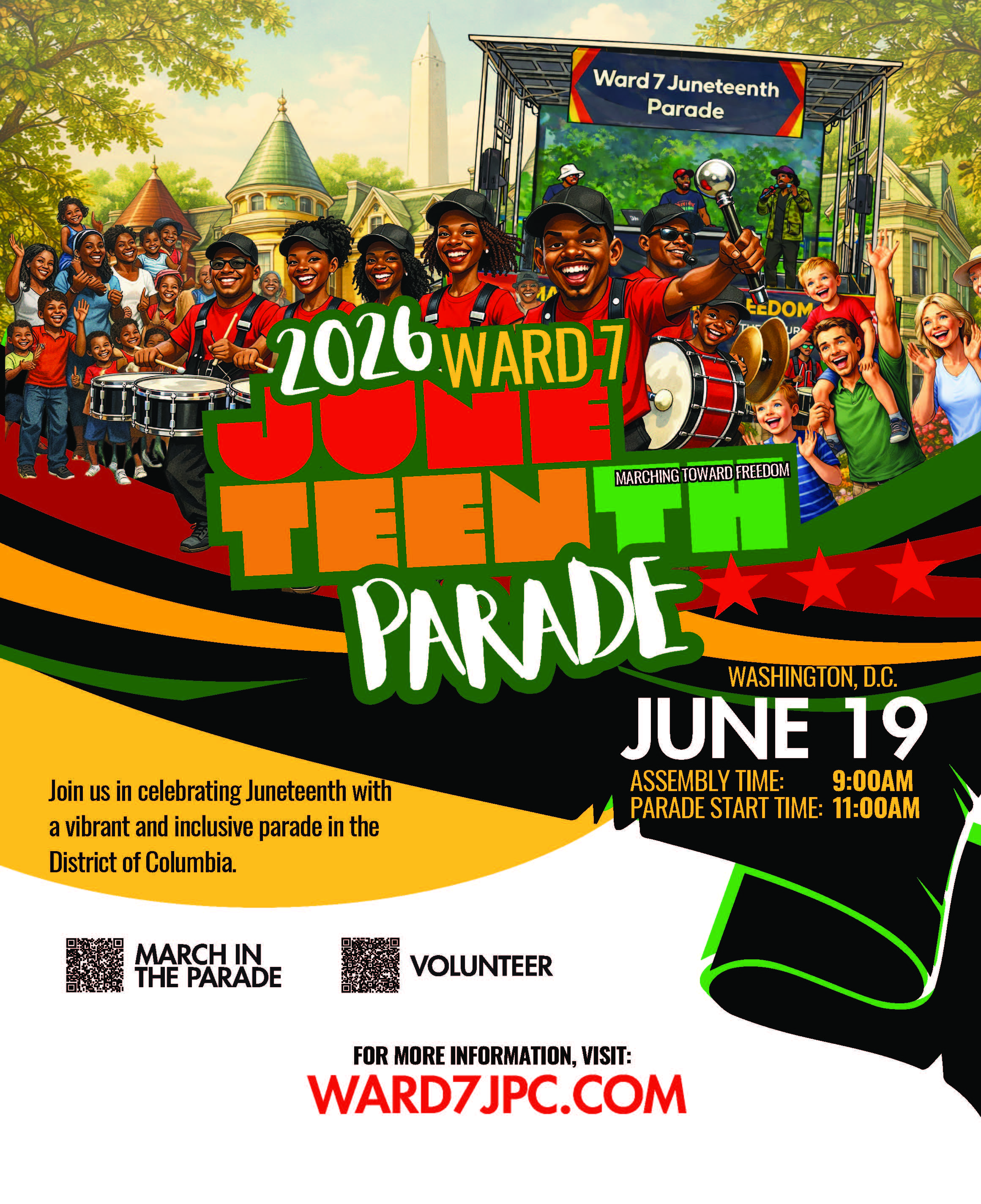 Artwork created during the workshop will extend beyond the studio—selected pieces will be reproduced and featured on banners and signs along the Juneteenth parade route. Participants will also be invited to march in the Ward 7 Juneteenth Parade on June 19.