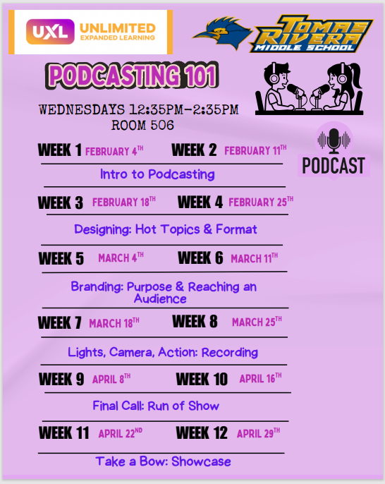 Podcasting 101 Wednesdays 12:35pm - 2:35pm Room 506