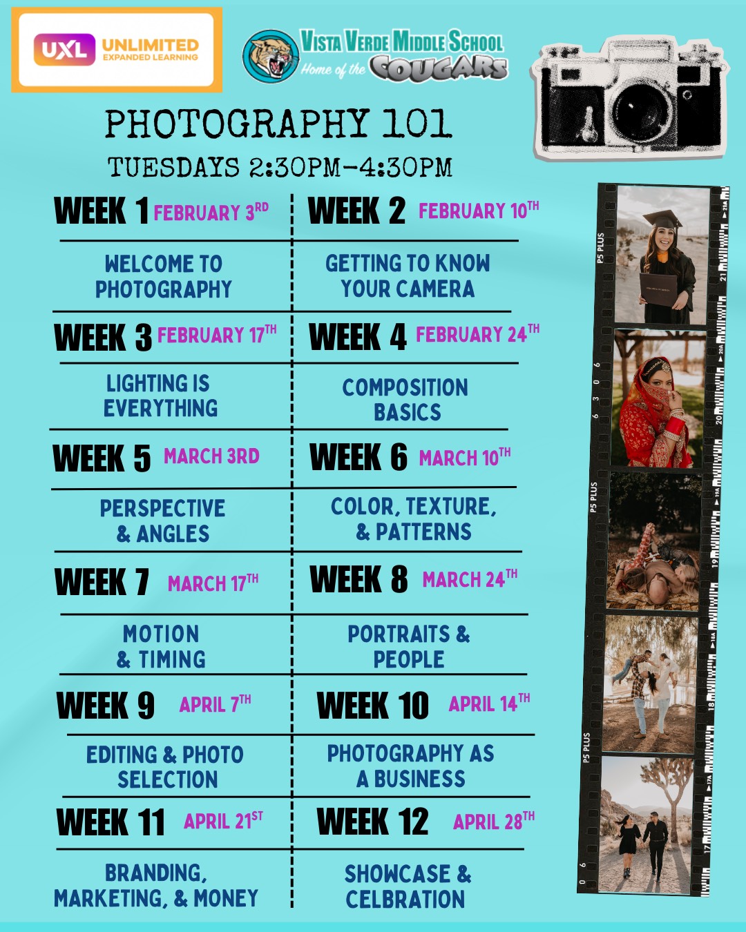 Our 12-week Photography Academy gives students a hands-on pathway to build communication, creativity, and leadership through photography. We’ve intentionally embedded academic support, SEL, and leadership development throughout the curriculum so students grow as both learners and leaders.